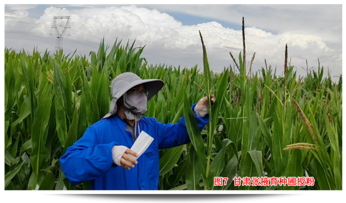 當然,我們還會把這些新加倍DH系在張掖基地種植一份進行套袋授粉。套袋授粉是我們每一個育種人員最熟悉不過的工作了,對于10萬株的授粉任務,我們需要培訓更多技術的工人來幫助我們。在7月將近一個月的時間里,每天都在地里跟玉米在一塊,不斷的指導和培訓工人授粉,授粉工作看似簡單實則不易,授粉時間把控很重要,不易過早也不能太晚,授粉早了結不滿,授粉晚了沒有花粉了,還有就是授粉授雜的情況。在37℃高溫下,我們頭頂著烈日,揮灑著汗水,看著玉米材料一株株授粉結束,內心還是充滿了無限的喜悅。